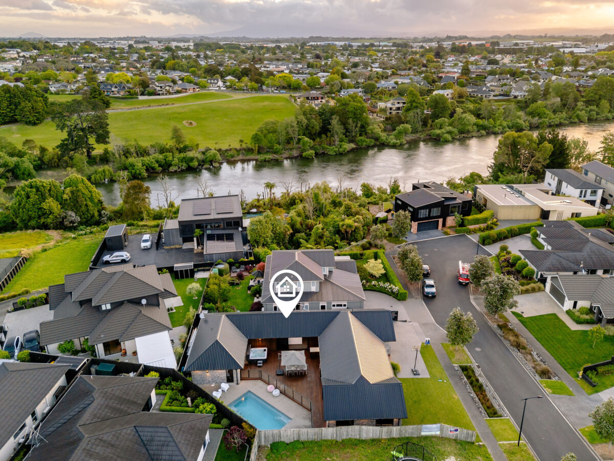 Positioned within one of Flagstaff’s most admired riverside pockets, this beautifully designed home captures the essence of modern family living. Built in 2020 and perfectly proportioned across 243 sqm, it blends sophistication, warmth, and effortless function in a quiet cul-de-sac environment. Light-filled open-plan living forms the social heart of the home, with a U-shaped layout that thoughtfully separates family zones for balance and privacy. The designer kitchen and scullery combine practicality with style, flowing seamlessly outdoors through wide stacker doors. The result is effortless indoor–outdoor connection to a sun-soaked entertaining area and the sparkling glass-balustraded salt-water pool, a private space made for relaxing and gathering with family and friends. With five bedrooms, including two with ensuites, a family bathroom, and a dedicated study, every member of the household is well catered for. Year-round comfort comes easy with zoned under-floor heating, a heat pump, and double glazing throughout. Internal-access double garaging and low-maintenance landscaping complete this exceptional package on its 685 sqm section. Set in a peaceful riverside enclave, you’ll enjoy nearby river walks, playgrounds, and Flagstaff’s thriving café scene. Zoned for highly regarded schools, Endeavour Primary, Rototuna Junior and Senior High and within easy reach of local shopping and expressway links, this is an address that promises lifestyle and longevity.
