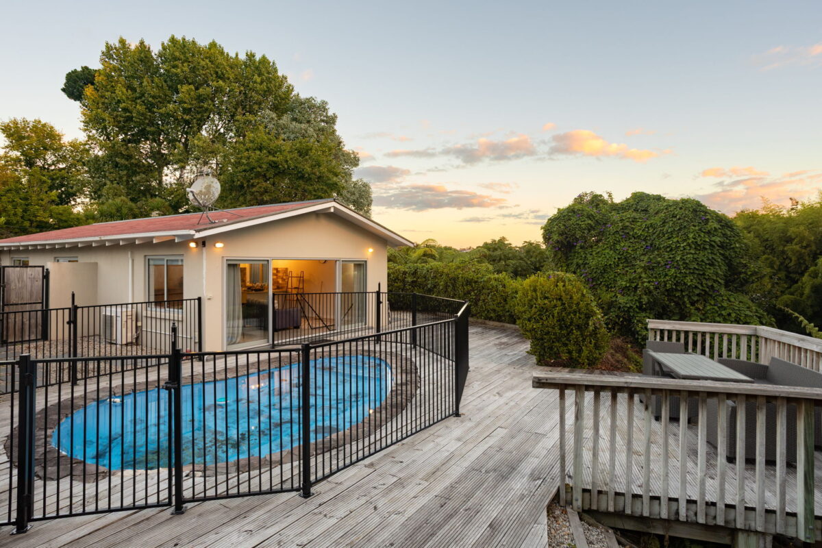 Tucked away at the end of a small cul-de-sac in Maeroa, 2B Roach Street is one of those properties that rewards the curious buyer. Private, green and full of character, this 1970s plaster over cinder block and double glazed home has been thoughtfully modernised over time, resulting in a relaxed and genuinely liveable space that feels removed from the pace of everyday life, whilst sitting right in the middle of it. The open-plan kitchen, dining and living area forms the heart of the home, with polished concrete floors and a higher gable stud lending the space an easy warmth and a sense of volume. A modern kitchen anchors the layout, updated to a standard that makes daily living and entertaining equally enjoyable. Double sliding doors open directly from the living area onto a generous timber deck and swimming pool, making the transition between inside and out feel natural and effortless, creating an outdoor setting that is hard to leave. Both bedrooms are well-proportioned, each featuring higher studs and double wardrobes, giving the home a comfort and functionality. The bathroom, finished with polished concrete floors, carries through the considered aesthetic of the rest of the property and includes a shower and bath. A separate laundry adds everyday practicality, as do two garden sheds and a well-tended vegetable garden for those who like to grow their own. A single internal-access garage provides secure parking and additional storage. The section itself is lush and private, with a green outlook that gives the property character rarely found this close to the city. At the rear, the section opens out to a natural gully, adding a layer of seclusion and greenery that makes the setting feel genuinely peaceful. The location is one of the home's genuine strengths. Waikato Stadium and Maeroa Intermediate School are within easy walking distance, Lunchbar Eighty8, famous for its pies, is just 300 metres away, and Hamilton CBD is close enough to make everyday life genuinely convenient. Low-maintenance, private and quietly special, this is a home that offers an enviable lifestyle you’ll never want to leave.
