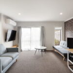 The essence of modern living, this stylish semi furnished townhouse delivers comfort, convenience, and an effortless lifestyle right in the heart of Hamilton City. Ideal for professionals, couples, small families, or those seeking a secure lock-up-and-leave, this home sits within easy reach of the hospital, CBD, supermarkets, cafés, Lake Domain, and the river walks — placing you at the centre of the city’s vibrant pulse. The ground level embraces an open-plan design with a generous living and dining space that flows seamlessly to a courtyard, perfect for relaxing or entertaining. Sunlight pours through the double-glazed windows, creating a warm, inviting atmosphere. The contemporary kitchen, fitted with quality Bosch appliances, ensures cooking is a pleasure. Upstairs, two double bedrooms are well-appointed and supported by a sleek main bathroom and a master ensuite, offering a restful retreat. Additional features include a heat pump, off-street parking and Healthy Homes compliance — appealing to both homeowners and investors. Completed in 2020, this low-maintenance urban haven is zoned for Hamilton Boys’ and Girls’ High Schools, offering the perfect balance of location, lifestyle, and long-term value.